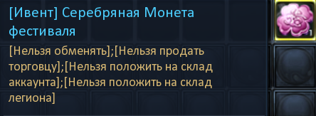 | Праздничное убийство Яростного Трирона / Лорда Ранмарка | Лаборатория Теобомоса / Форт Адма | Осколок божественного благословения (1 шт) | ![]() | • Серебряная Монета фестиваля (1 шт) • Синяя чешуя балаура (3 шт) 📌 [Ивент] Мешочек с маг. камнями (10 шт) |