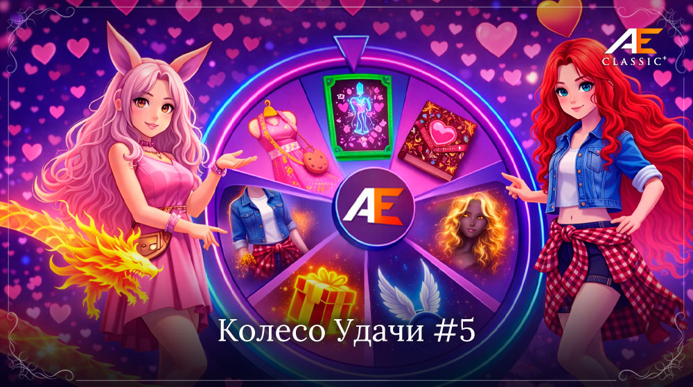 Колесо Удачи #5 предлагает тщательно отобранные призы. Каждая вещь — это решение администрации, в котором учтены реальная востребованность у игроков, очаровательный праздничный внешний вид и тёплая, влюблённая атмосфера 14 февраля.