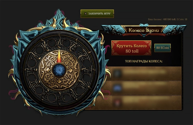 2. Нажав, вы перейдете на страницу с колесом. Чтобы крутить за toll, нажмите кнопку "Крутить колесо". Чтобы крутить за ECoin, нажмите кнопку с соответствующей суммой за кручение.